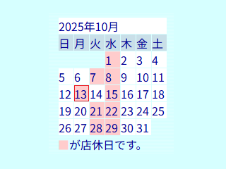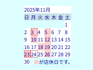 来週の月曜日(11/10)は都合により臨時休業させていただきます。