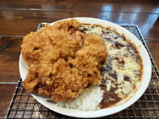 巨大な唐揚げをバキバキ食べてカレーをパクパク。辛さはほぼ無く旨味で勝負してます。美味い!