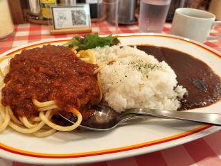 お昼は近所のマミーマートまで散歩がてら行き、トルコライスを買ってきました。見た目ゴージャスで味もグーじゃないか♪ いい気分転換になりました。