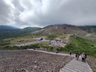 駐車場から目の前の階段をえっちらおっちら10分ほど登ると火口に到着。