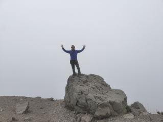 でもココが一番高そうなので頂上とします。タイミング悪くすっぽり雲の中に入ってしまい、景色がいまいち(-_-;)
