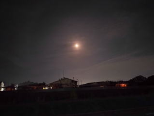 中秋の名月は雲が多くて見られませんでした。今宵のお月様は・・・雲がかかってボンヤリですねー。残念。 |