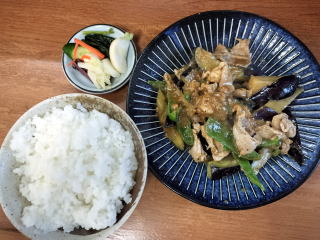 近所の街中華で茄子ピーマン肉味噌炒めのランチ。めちゃ美味だった♪ ご飯がふわふわ ( ´ ▽ ` )